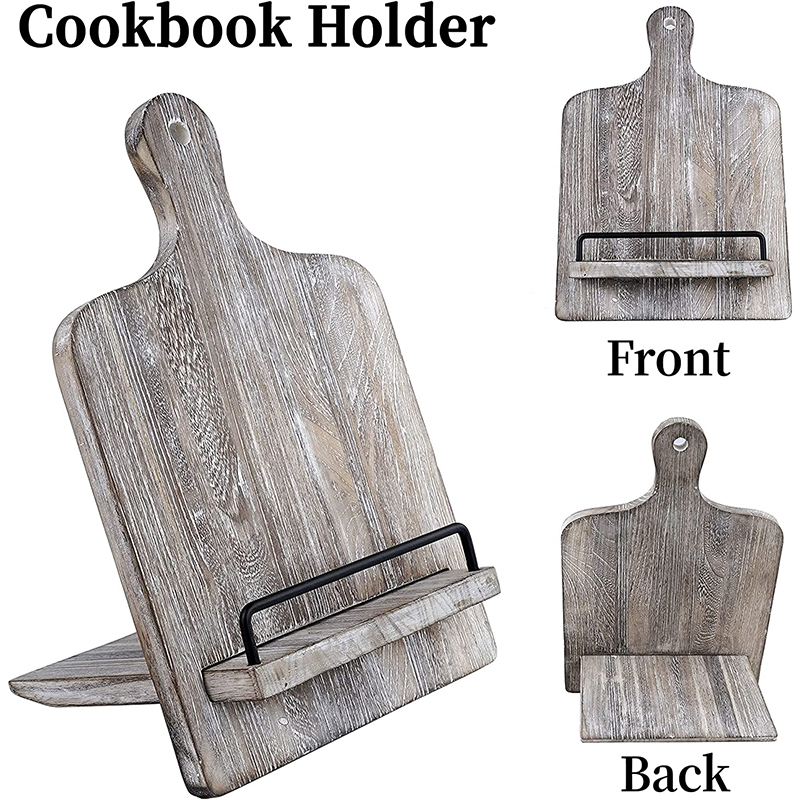 Wooden Cookbook Holder Stand Cutting Board Style Recipe Holder Book Stand with Adjustable Pull-Out Stand