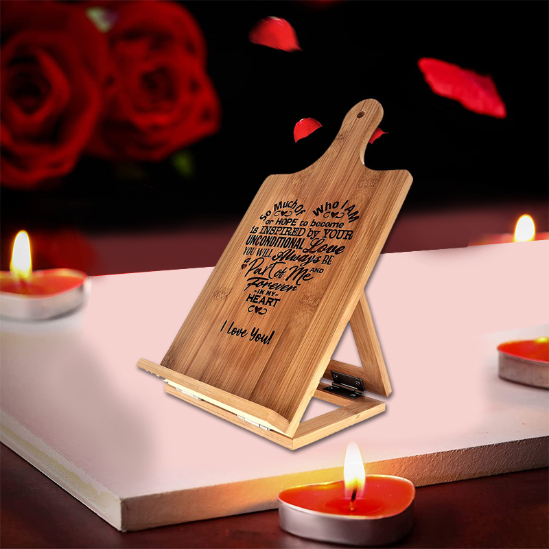 Mothers Gift Wooden Cookbook Recipe Holder Stand Engraved Foldable Wooden Chef Easel Bamboo Cutting Board Kickstand